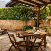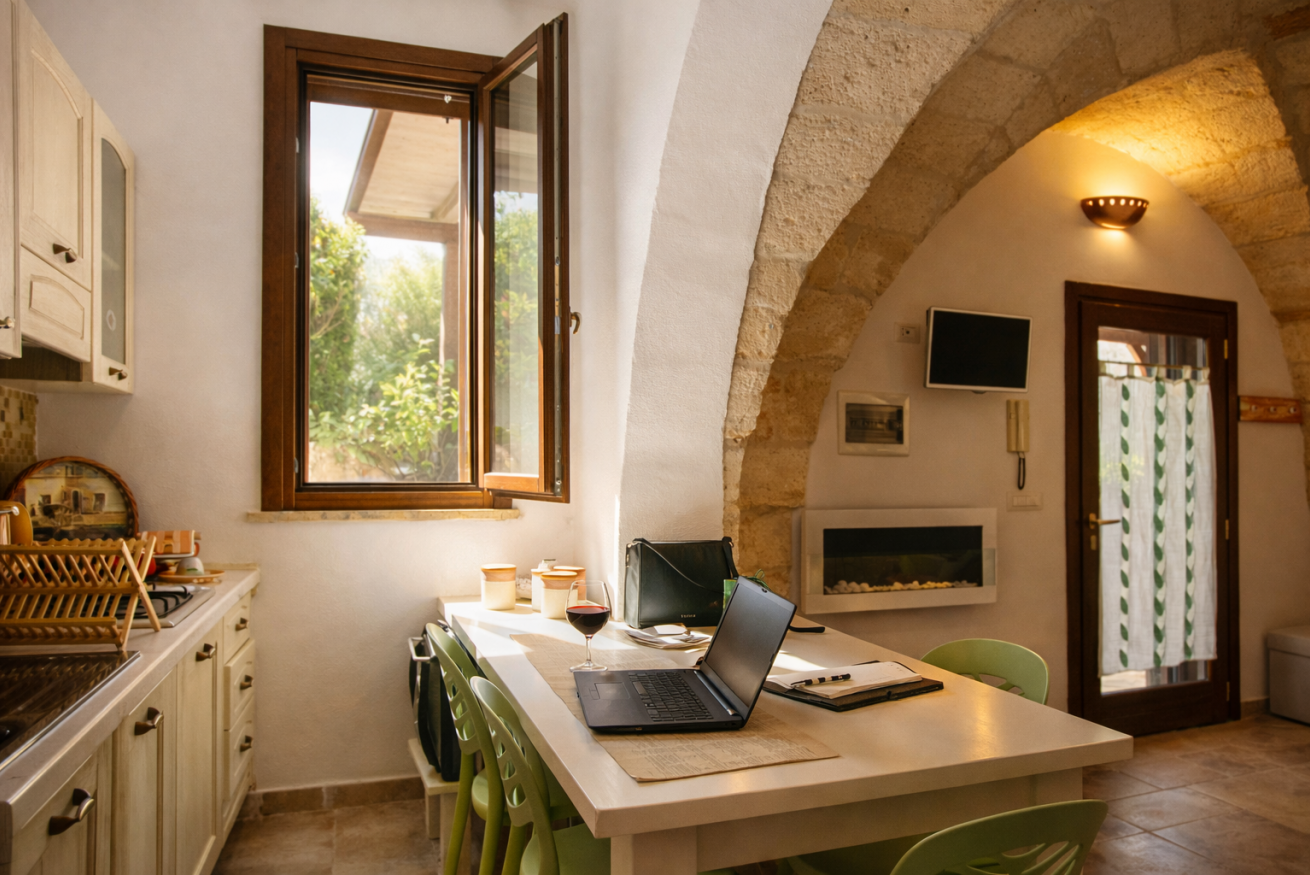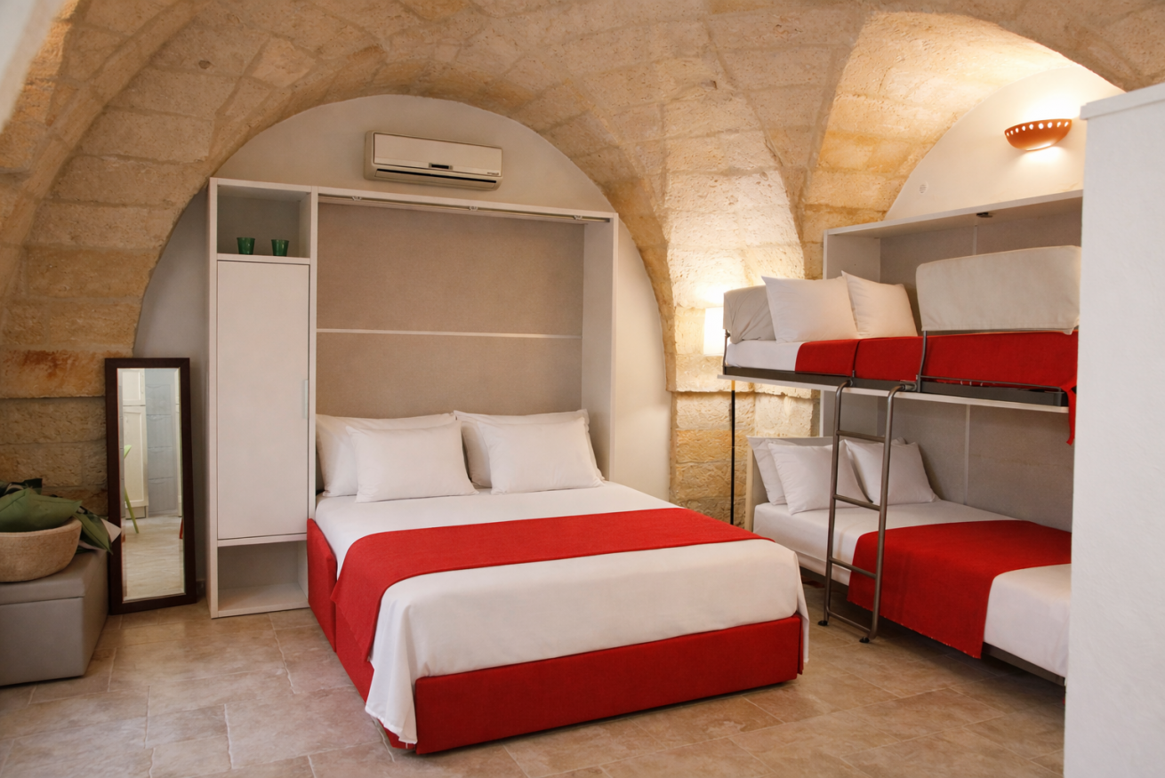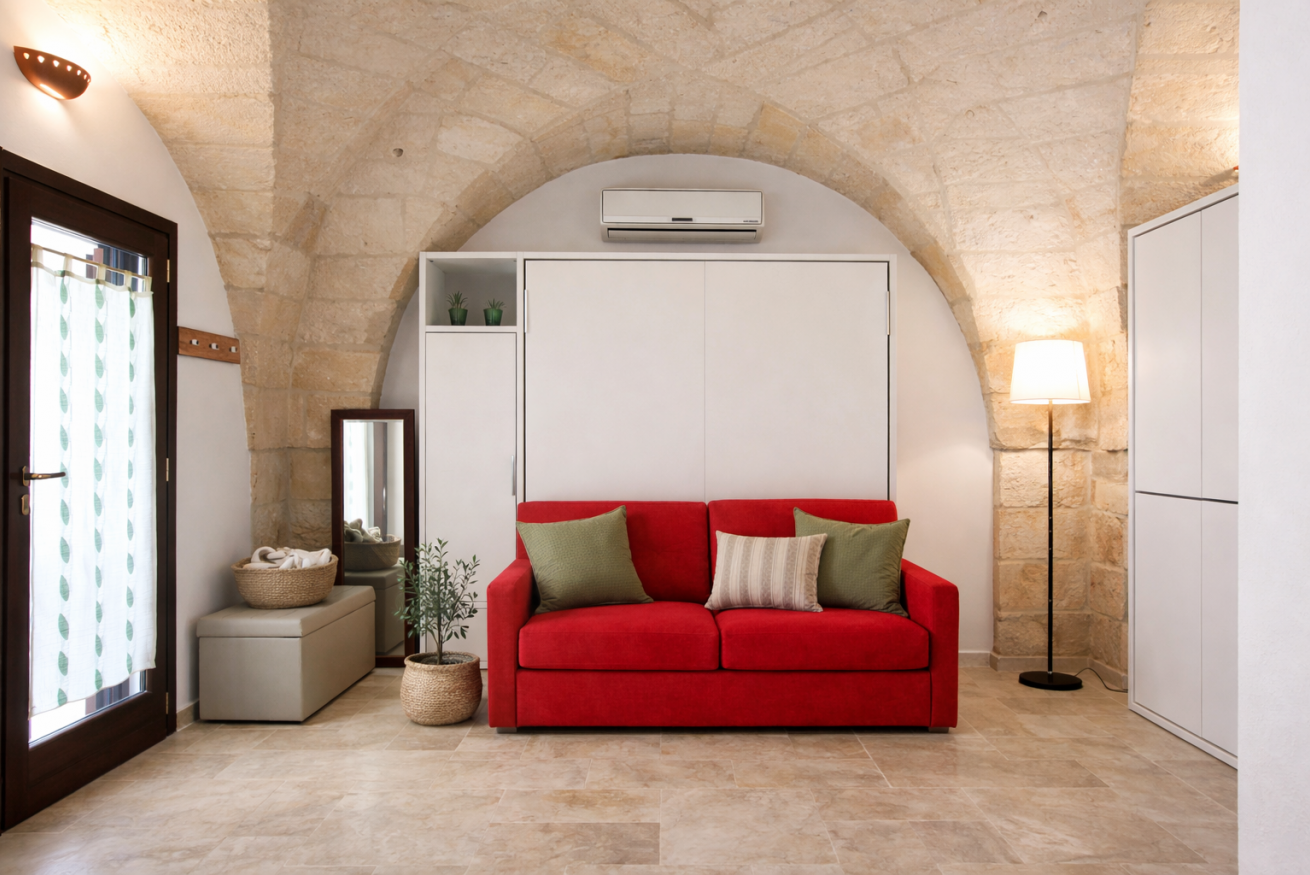 Dimora “Li Santi” è un rifugio autentico immerso nel cuore del Salento, nato da un’antica cava di tufo che custodisce conchiglie fossili come piccoli segreti del tempo. Il bilocale, al piano terra, accoglie con una suggestiva volta a stella a vista, angolo cottura attrezzato, comodo bagno con doccia e 2+2 posti letto. All’esterno, un ampio patio ombreggiato e un giardino profumato di gelsomino e rosmarino invitano al relax più puro. Tra ulivi e muretti a secco, a pochi passi dal mare di Santa Caterina e dal parco di Porto Selvaggio, ogni dettaglio racconta la bellezza del territorio. Qui, il tempo rallenta e si ritrova l’armonia.