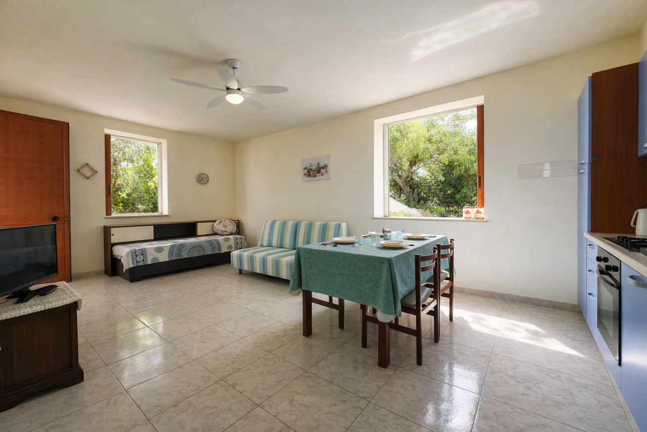 MalùHome è un accogliente bilocale di 45 mq al piano terra, con sala pranzo, cucina, divano letto, camera matrimoniale e bagno con doccia. Dispone di un ampio patio e giardino attrezzati con arredi esterni e barbecue per momenti di relax all’aperto. Sant'Isidoro è la base ideale per esplorare le spiagge locali e raggiungere in pochi minuti Porto Cesareo e il Parco Naturale di Porto Selvaggio, con la sua baia tra le più belle d’Italia.